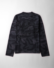 Relaxed cut, fits true to size with long sleeves and a tight waffle knit thermal fabric. Features a prominant chainstitch stretching across the entire back body.