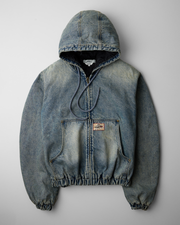 This washed denim zip-up hoodie combines utility with a vintage streetwear feel. It features a full hood with drawstrings, central zip closure, kangaroo pocket, and elasticated cuffs and hem for shape. Finished with seam detailing and a woven Adidem patch, the washed treatment gives it a lived-in, versatile look perfect for everyday wear.
